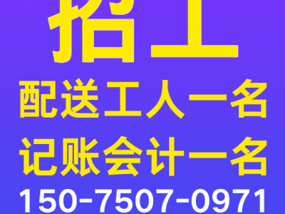 招配送工人一名,记账会计一名,