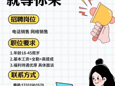 招聘电话销售/网络销售 底薪+高提成+公休福利待遇优厚具体可以面谈 地址:产业城东区18-35