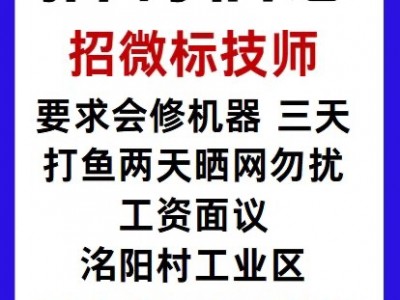 招聘微标技师,要求会修机器,三天打鱼两天晒网勿扰,工作地址:洺阳村