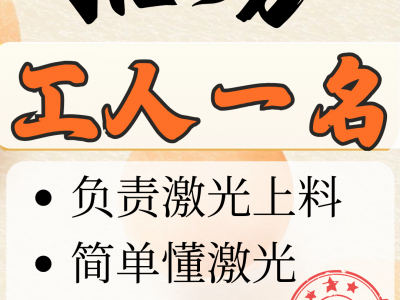 刘汉姚村工业区找工人一名,负责激光上料,简单懂激光,年龄22-35