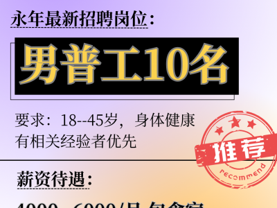 诚聘:男普工10名,