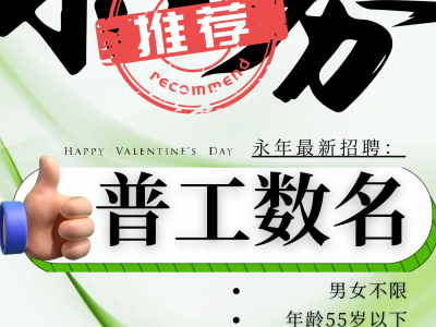 招普工数名,男女不限,年龄55岁以下,长白班,工资面议
