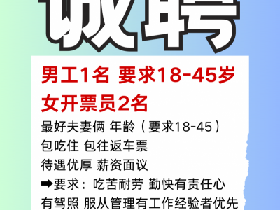 女开票员2名 最好夫妻俩 年龄(要求18-45)