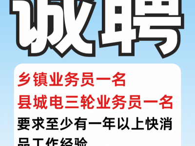 县城电三轮业务员一名
