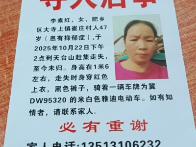 家人丢失,父老乡亲多多留意,家人万分感激,提供消息必有重谢