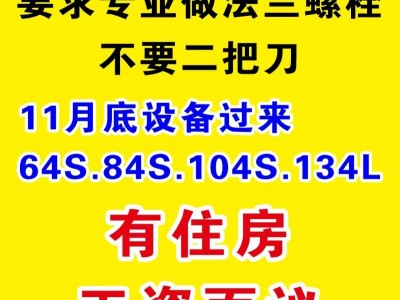 招技师:要求专业做法兰螺栓,不要二把刀,11月底设备过来64S,84S.104S.134L,有住房,工资面议