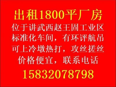 位于讲武西赵王固工业区标准化车间,有环评航吊可上冷墩热打,攻丝搓丝,价格便宜