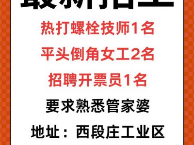 热打螺栓技师1名,平头倒角女工2名