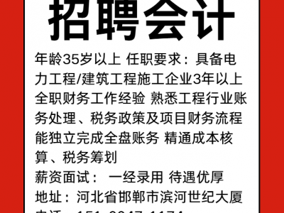 年龄35岁以上,任职要求:具备电力工程/建筑工程施工企业3年以上全职财务工作经验,熟悉工程行业账务处理、税务政策及项目财务流程;