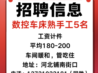 数控车床熟手工5名