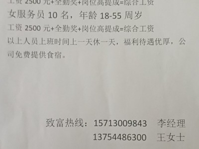 清溪水韵现面向全县招聘: 1、前厅收银 2、前厅接待 薪资待遇:基本工资+全勤+提成+多劳多得 福利待遇:节假日福利+年终福利+带薪上岗培训 地址永年老一中对面