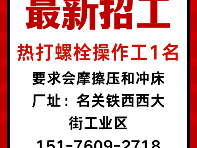 热打螺栓操作工1名