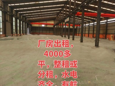 厂房出租,4000多平,可整租可分租,有航吊,交通便利,位置优越,西环路与露禅大街交叉口北行100米路西