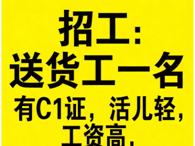 招工:送货工一名,有C1证,活儿轻,工资高,三天打鱼两天晒网的不用,非诚勿扰