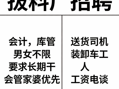 拔料厂招聘送货司机,装卸车工人,工资电谈