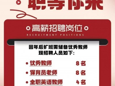 招聘幼儿园教师 班级管理备课上课家长沟通 地址:河北省邯郸市永年区临洺关镇洺兴路四季春城东南侧