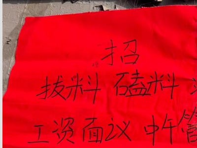 招聘 全自动拔料机(直条料)磕料工滚丝工 工资面议,中午管饭,常年不停 地址:河北省邯郸市永年区庙西街