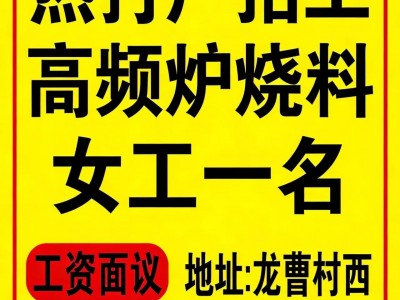 热打厂招高频炉烧料女工一名,工资面议