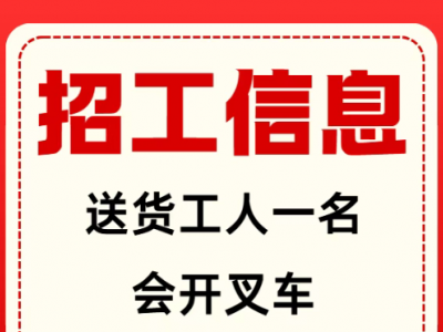 招聘:送货工人一名,会开叉车
