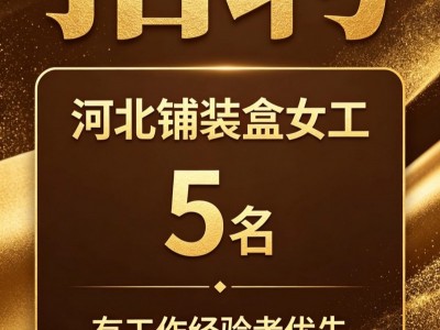 河北铺装盒女工 5名 有工作经验者优先 常年活 不停
